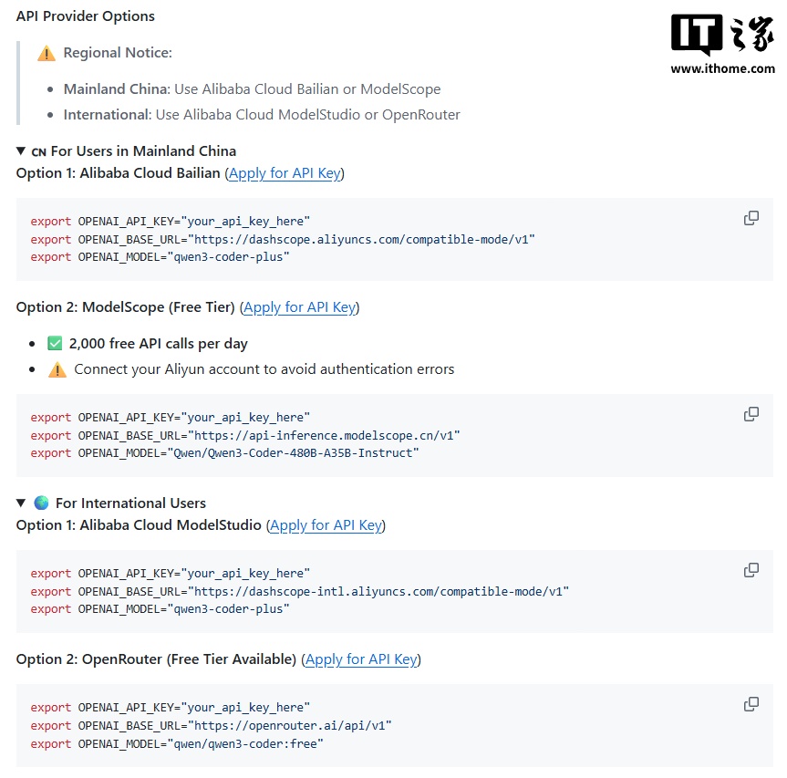其 GitHub 主页显示每天 2000 次的 ModelScope API 调用仅限中国大陆用户(海外 1000 次 OpenRouter API 调用)。此外,官方还同步为开发者提供了 GitHub 获取和使用相关资源。