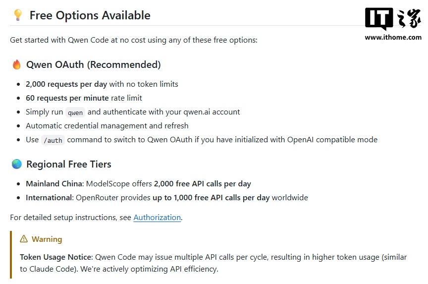 IT之家 8 月 9 日消息,阿里云通义千问官方宣布,AI 编程智能体 Qwen Code 用户每天可免费获得 2000 次(请求)运行权限,且没有 Token 限制。
