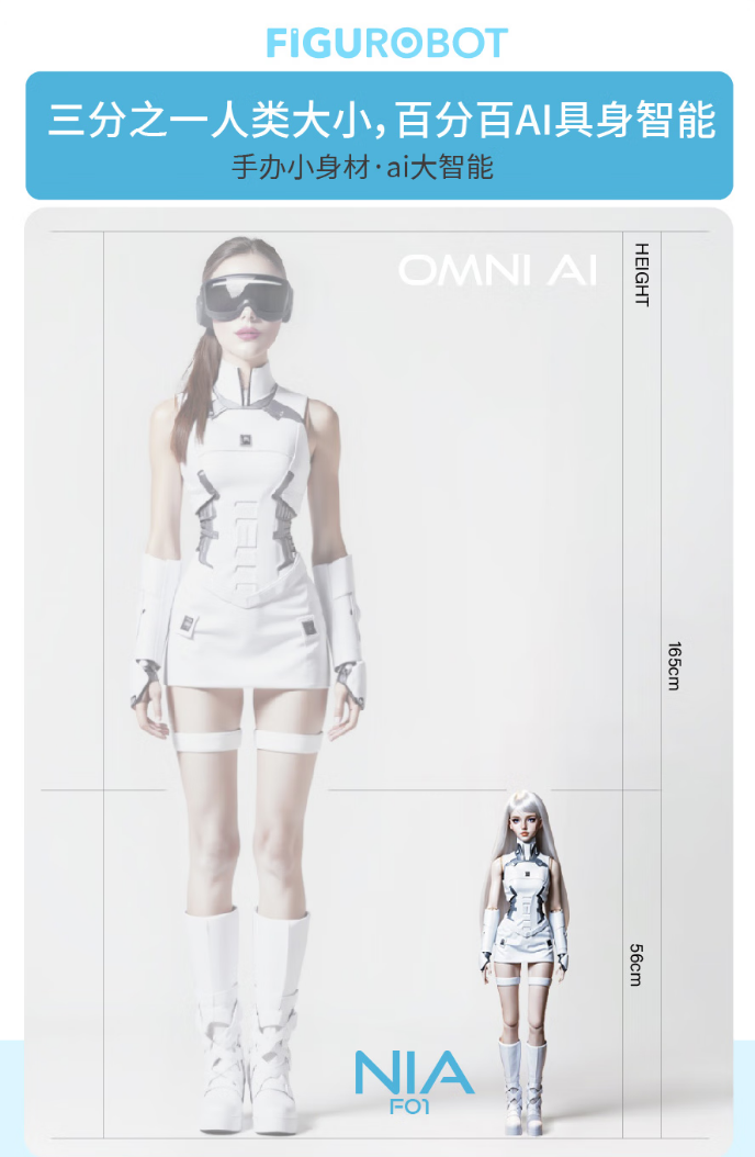 灵童念 NIA-F01 身高 56cm,约等于 1/3 人类身高,官方称“这个尺寸既符合人类对伙伴的心理预期,又适配家庭、办公等多场景摆放”。