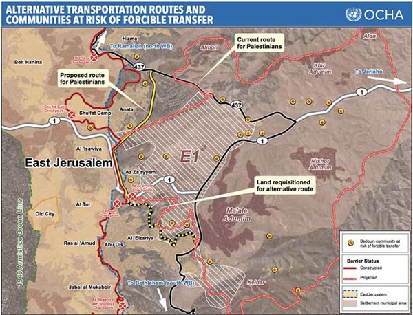 E1区位于约旦河西岸中间地带,面积约12平方公里。一旦以色列在该地区建犹太人定居点,将进一步分割东耶路撒冷和巴勒斯坦人聚居区,并将约旦河西岸分为南北两块,巴勒斯坦人从约旦河西岸北部到南部通行将进一步受阻。巴勒斯坦一直寻求以东耶路撒冷为首都,在包括约旦河西岸和加沙地带的区域建国。以色列最早于1990年代计划在E1区建犹太人定居点,但在美国和国际社会强烈反对下,定居点计划被搁置。