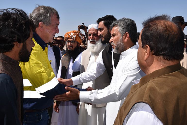 巴里克黄金公司首席执行官(左)在雷科迪克项目现场(Reko Diq)