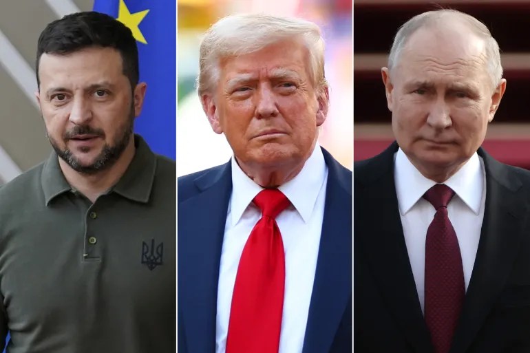 阿拉斯加峰会汇聚了普京(右)和美国总统特朗普(中),乌克兰总统泽连斯基对此翘首以盼(盖蒂图像)