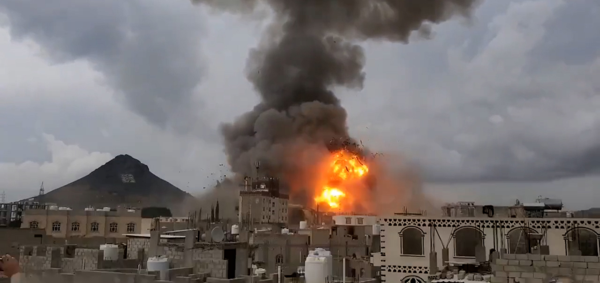 经半岛电视台核实的视频显示,在以色列的空袭之后,萨那上空升起巨大的火焰和浓烟。