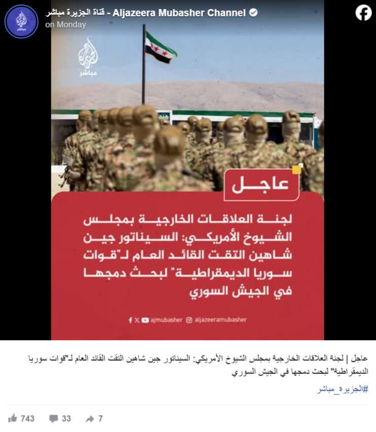 奥维斯向半岛电视台补充道,美国的战略目标是防止“伊斯兰国”等极端组织的死灰复燃。从这个角度来看,决策者认为,任何迫使叙利亚民主力量与叙利亚政府军合并的过度压力都可能导致政治和安全方面的失败,尤其是在美国多年来对这些部队进行大量投资之后。这使得华盛顿在最终确定解决方案时保持谨慎。