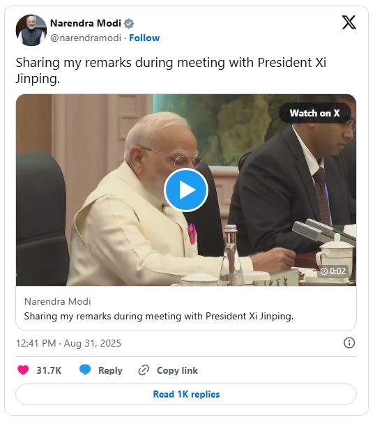 — 纳伦德拉·莫迪 (@narendramodi) 2025年8月31日