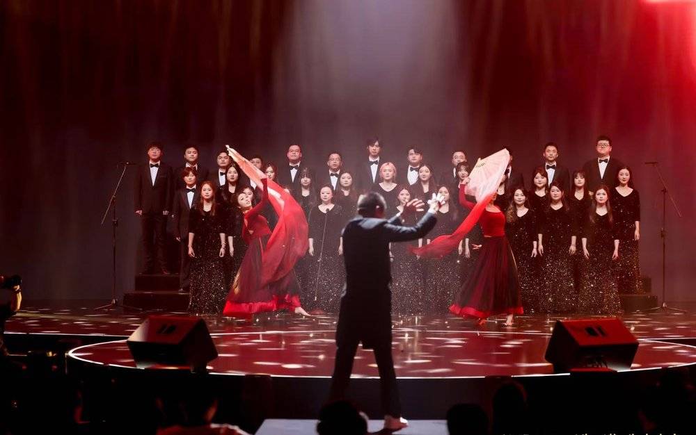 乐队声毕,身穿燕尾服的指挥走上舞台,带领着松鼠音乐团唱起《就是哪吒》,唱至“我命由我不由天”时,指挥高举起双手,环成圆形,在右侧努力的划着大圈。至此,这个看起来不够专业的动作,才让现场观众意识到,这位黑色燕尾服套装配白色运动鞋的指挥似乎就是章燎原本人。猜测得没错,歌曲结束后,随着这位非专业指挥的转身,大屏幕上缓缓打出两行大字:从“久违了”到“重生了”。