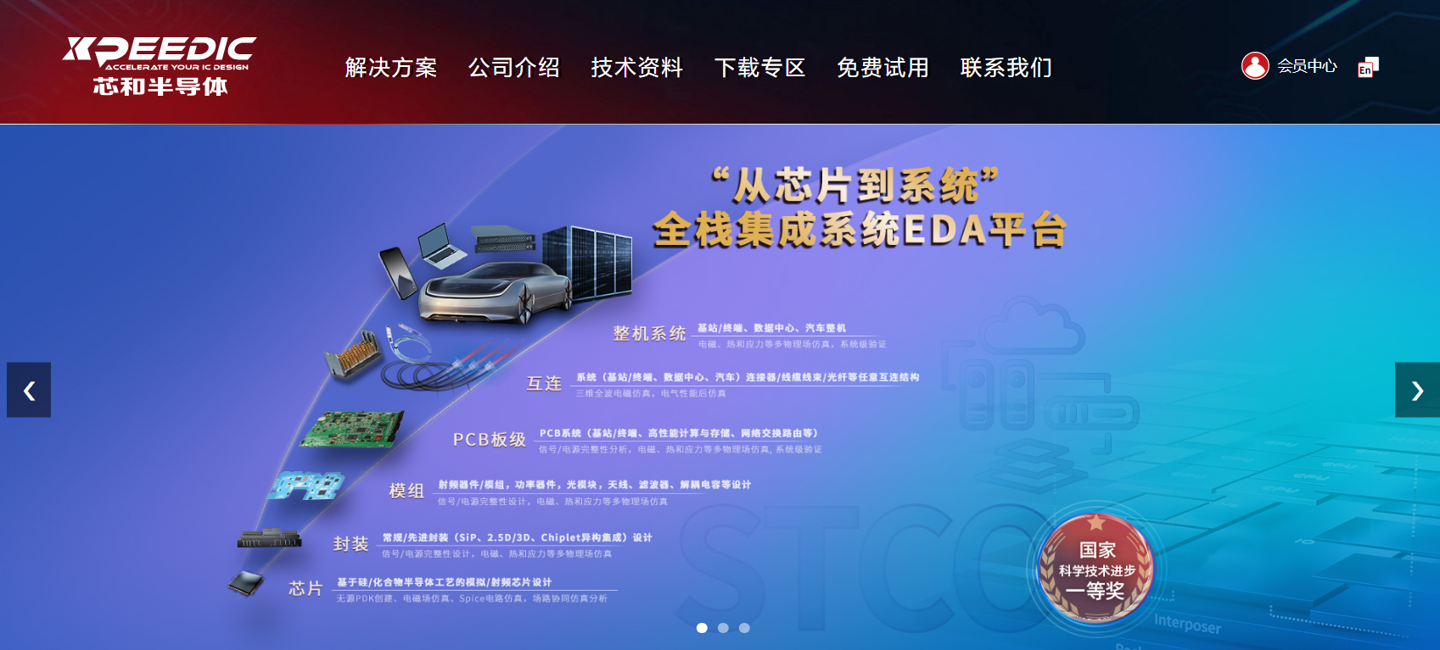芯和半导体科技(上海)股份有限公司(以下简称“芯和半导体”)是一家从事电子设计自动化(EDA)软件工具研发的高新技术企业,围绕“STCO 集成系统设计”进行战略布局,开发 SI / PI / 电磁 / 电热 / 应力等多物理引擎技术,以“仿真驱动设计”的理念,提供从芯片、封装、模组、PCB 板级、互连到整机系统的全栈集成系统 EDA 解决方案,支持 Chiplet 先进封装。