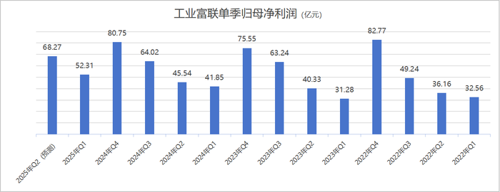 其中二季度增速远优于一季度。工业富联预计二季度实现归母净利润为67.27亿元至69.27亿元,同比增长47.72%到52.11%。