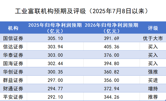 华创证券也上调了业绩预期,将工业富联2025年归母净利润由原来的预计282.34亿元上调至300.35亿元。