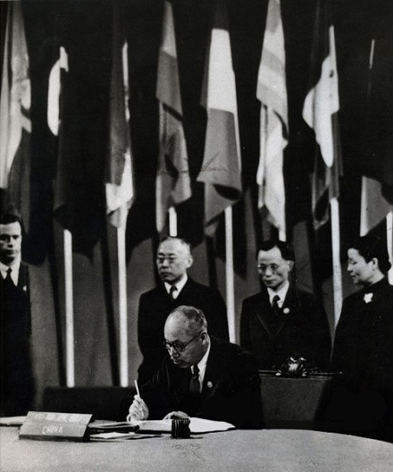 1945年,董必武在旧金山联合国制宪会议上签字。