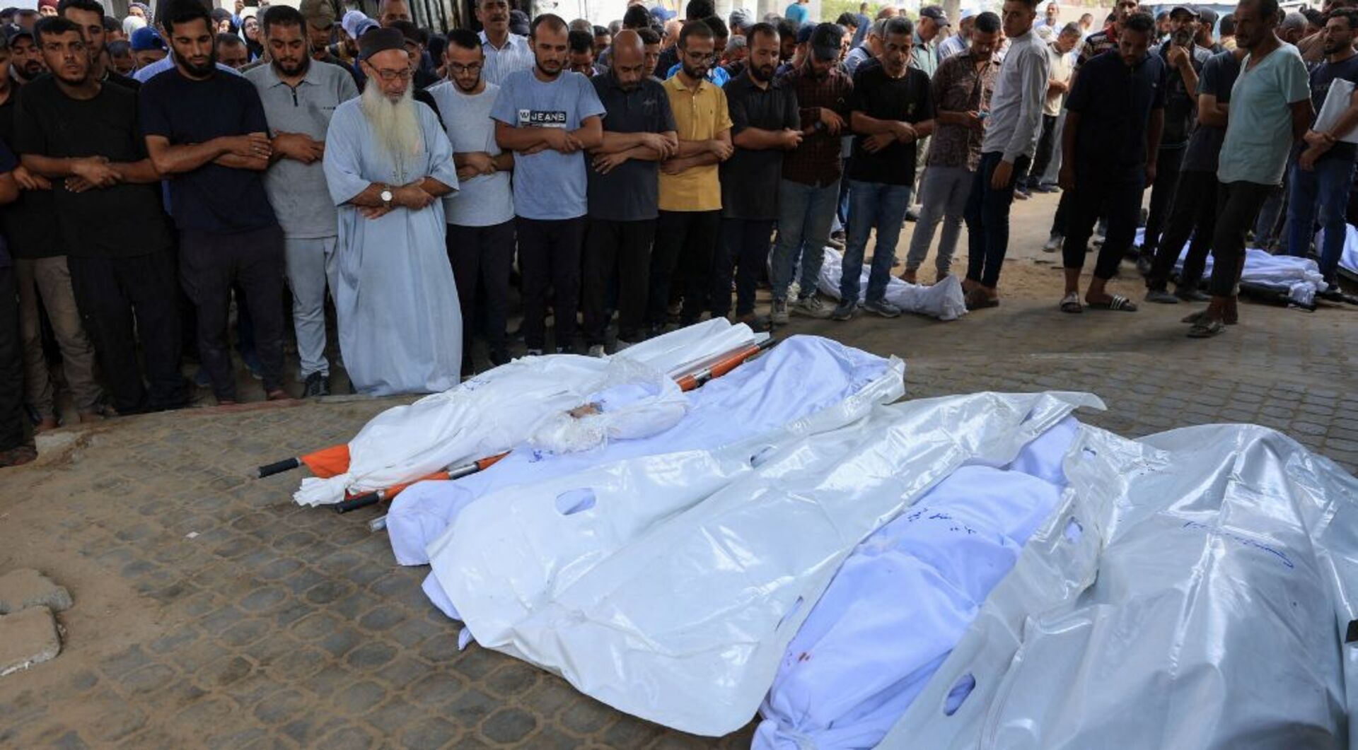 医院已不堪重负。加沙城希法医院的停尸间地板上放满了裹着白布的尸体。