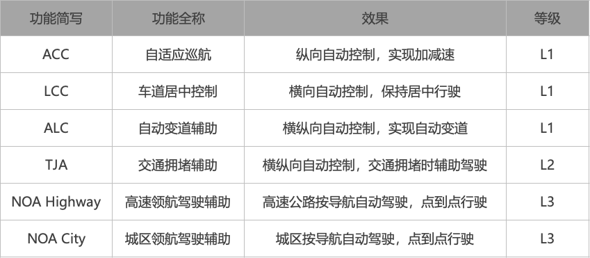 汽车行业对乘用车智能辅助驾驶细分功能的等级划分如下: