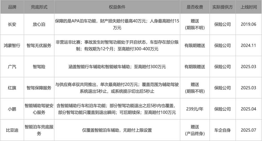 • 此前行业内对于智能泊车场景的“兜底”覆盖,大多不是由车企直接负责,而是车企与保险公司合作,仍是车企的增值服务和权益。保险公司在其中只扮演 “合作方”,在其中主要参与相关风险评估、赔付边界测算及服务定价;