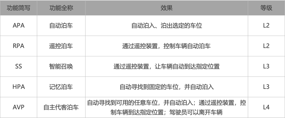 智能泊车驾驶辅助功能汇总