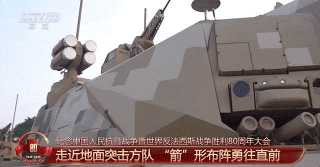 3日上午,纪念中国人民抗日战争暨世界反法西斯战争胜利80周年大会在北京天安门广场隆重举行。阅兵中,由99B坦克、100坦克、100支援战车编成的地面突击方队呈“箭”形布阵,寓意打赢之箭、胜利之箭。