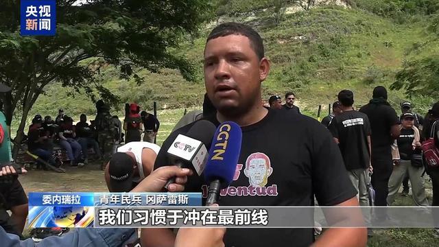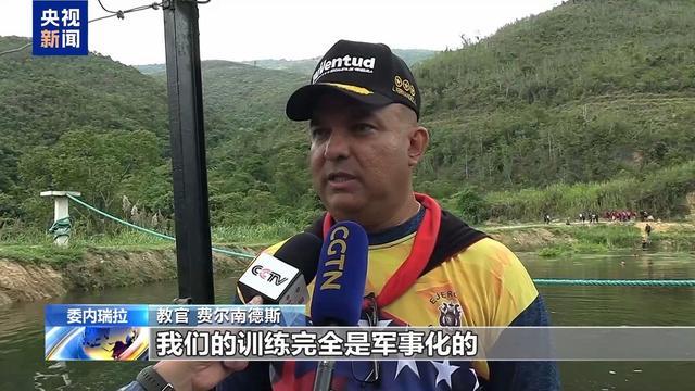 总台记者 宫祥诚:这里是一处民兵训练营,位于首都加拉加斯大约有30分钟车程的距离。我们可以看到周围被群山环绕,是一个比较隔绝的地方,这里正有300多名来自委内瑞拉全国各地的此前接受应征加入民兵组织的年轻人正在接受军事理论的学习。他们马上就要行进到附近的一个湖泊,进行水上作战的训练。