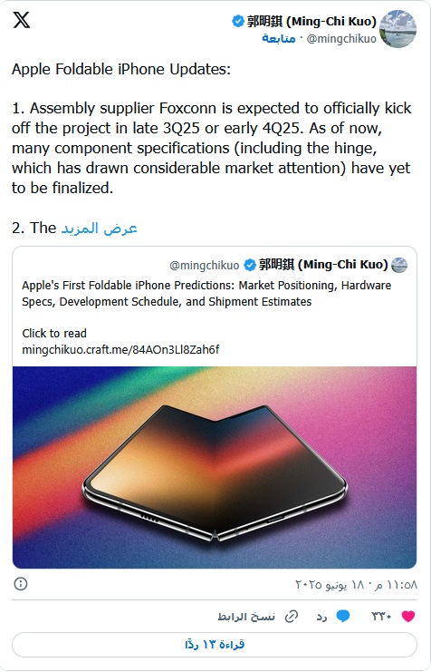 • 9月:只推出 Pro、Pro Max、Air 以及折叠款 iPhone 18 Fold