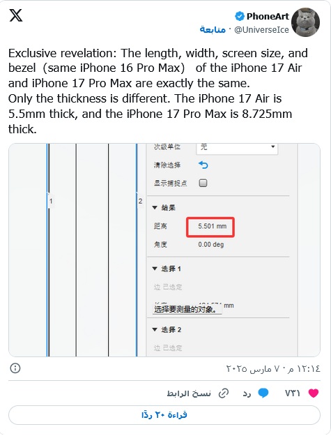 • iPhone 17 Air厚度仅5.5mm,比三星Galaxy S25 Edge 更薄