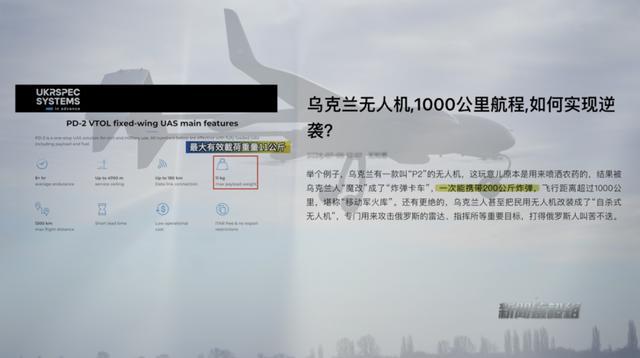 理论上来讲,乌克兰无人机具备如此远距离的攻击力,那么完成攻击的是哪款机型呢?我们在众多报道中都没有找到。不过,一篇中文媒体中的帖文给出了一条线索。文中说,乌克兰一款“P2”无人机原本是用来喷洒农药的,结果被乌克兰人魔改成了“炸弹卡车”,一次能够携带200公斤炸弹,飞行距离超过1000公里,堪称“移动军火库”。搜索结果显示,比较符合贴文说的机型,是一款由乌克兰无人机公司生产的PD-2无人机。