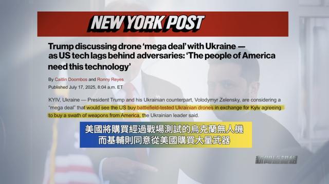 以“美国买乌克兰无人机”作为关键词进行搜索,我们发现,大部分报道引用的信息来源都是泽连斯基的讲话。七月中旬,他在接受《纽约邮报》采访时强调,特朗普和他正在讨论一项无人机大交易,美国将引入乌克兰无人机技术,而乌克兰则会换取美制武器。他还宣称,这是美国人民需要的技术,是一笔双赢的安排。