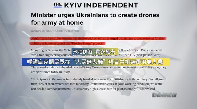 2024年1月,《基辅独立报》曾经发文,称数字化转型部长费多罗夫敦促乌克兰人在“人民无人机”项目框架下为国内军队制造无人机。