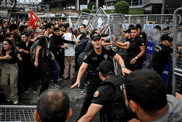 警方与共和人民党抗议者在伊斯坦布尔党总部外发生冲突 (盖帝图像)