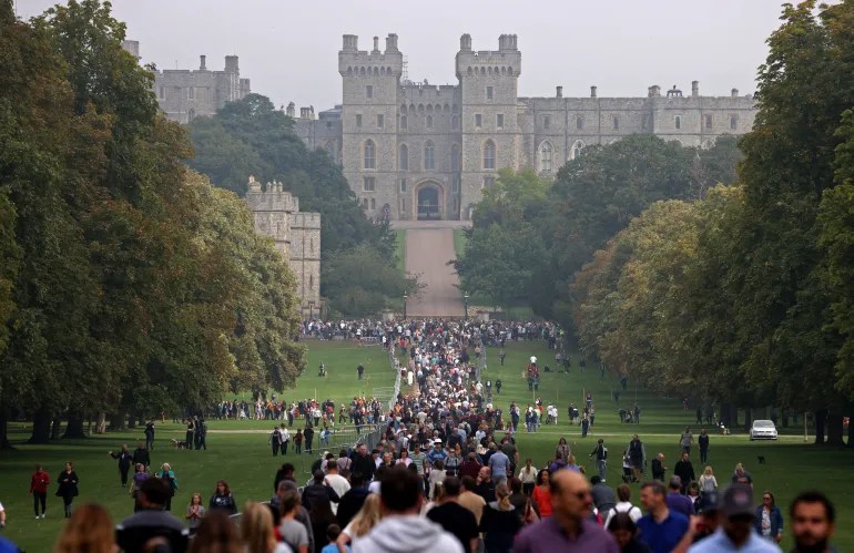 公众成员沿着温莎大公园的长廊行走,温莎城堡外,伦敦西部(法新社)