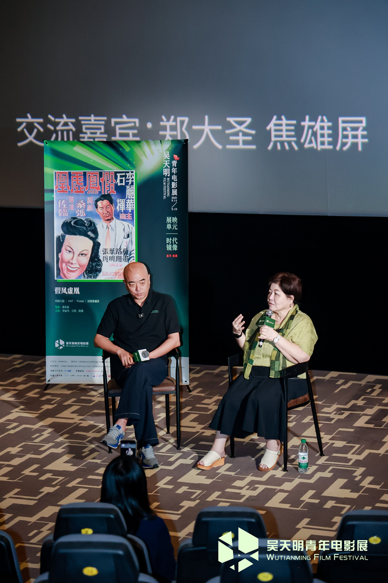在映后交流环节,本届吴天明青年影展荣誉主席、被誉为“华语新电影教母”的金马奖前任主席、著名电影人焦雄屏和著名导演、《假凤虚凰》导演黄佐临先生的外孙郑大圣与观众进行了映后交流。在这场信息量很大的对谈中,他们聊到了被胡金铨导演誉为“中国当代电影史上最伟大的演员”石挥的精湛演技、黄佐临等戏剧先驱的实践历程,上海早期电影是如何受到同时期好莱坞影响,成功将西方的电影类型片本土化,以及如何深刻影响了之后的香港电影文化和当代电影的传承。