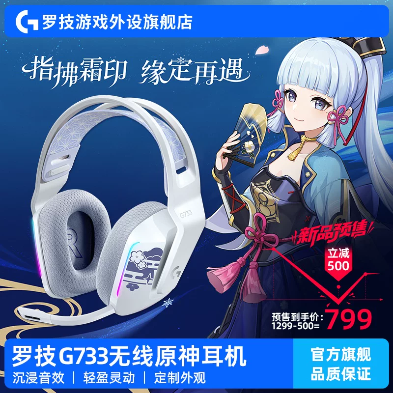 天猫《原神》神里绫华 定制款 罗技 G733 耳机 10 月 10 日 23:30 前支付 100 元定金 799 元参与预售