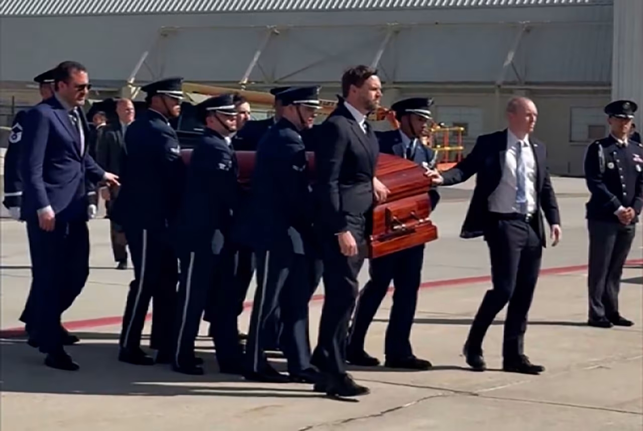 当地时间11日,美国副总统万斯前往犹他州为柯克抬棺 视频截图