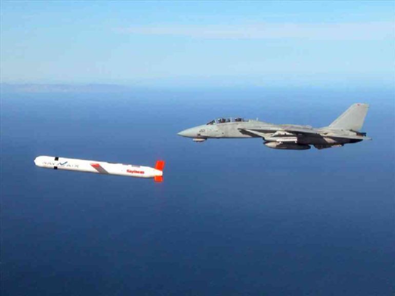 美国海军”战术战斧”Block IV型巡航导弹在F-14″雄猫”战斗机护航下飞行 (美联社)