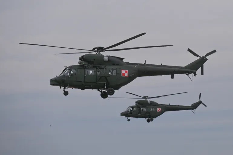 2023年5月6日,波兰军用直升机在新德巴军事基地进行强化训练 (盖帝图像)