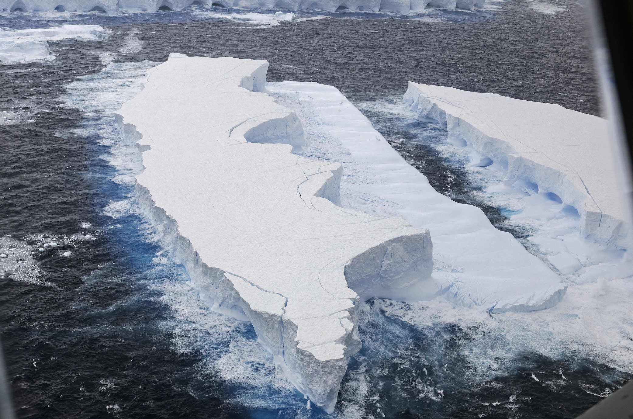 当地时间2025年3月13日,世界最大冰山A23a在南乔治亚岛附近的浅水区崩解,该岛栖息着数百万只企鹅和海豹。图片来源:CFP