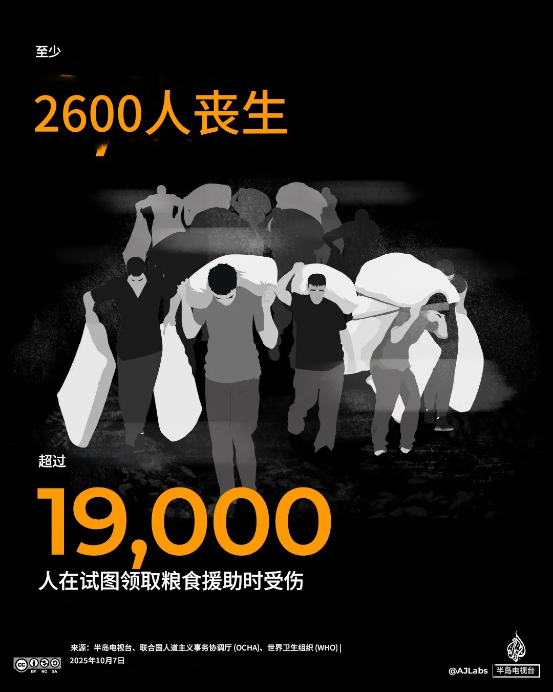 据加沙卫生部称,在试图从加沙人道主义基金会的站点领取食物时,以色列士兵和该基金会安保承包商的枪击已造成超过2600人死亡,超过19000人受伤。