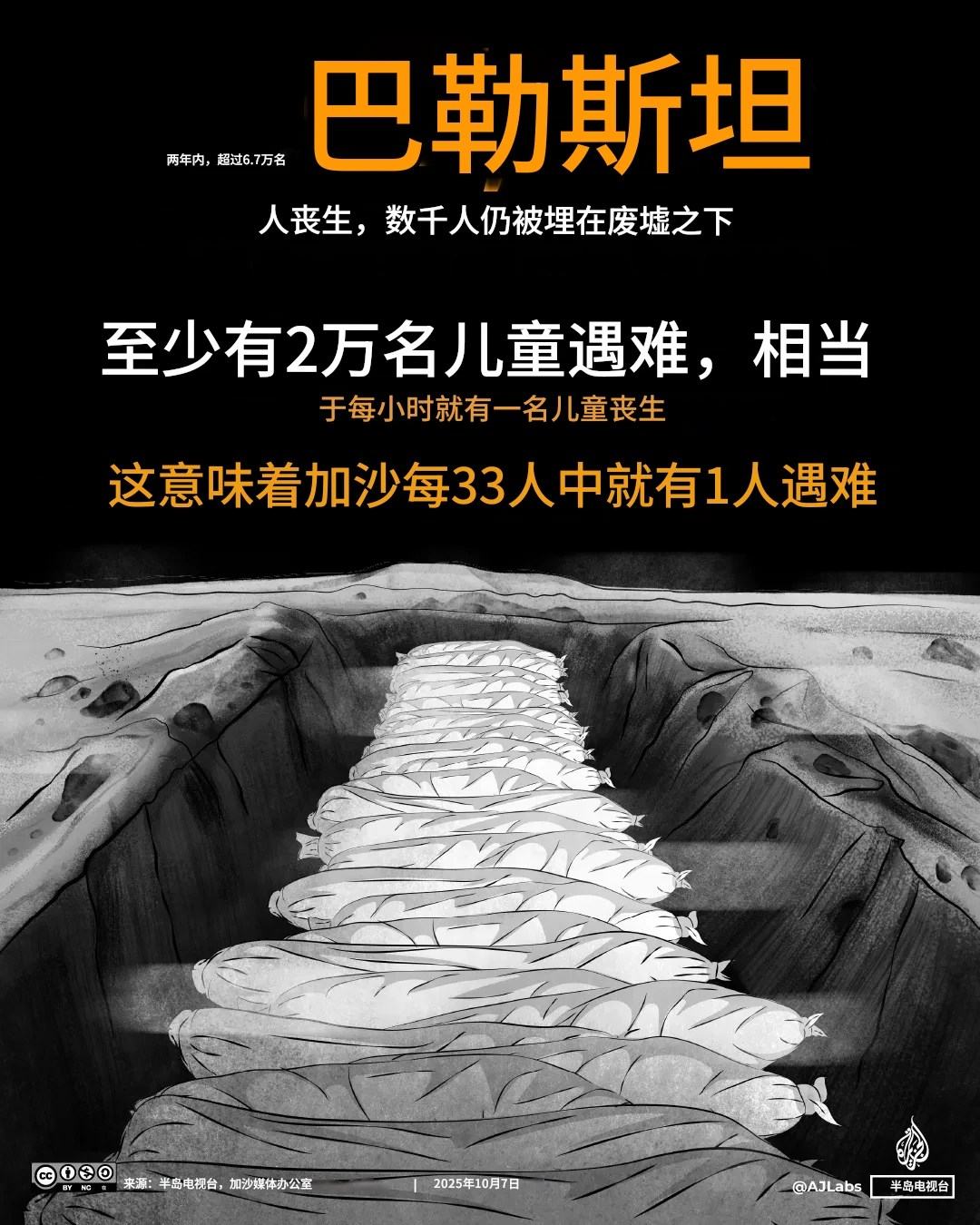持续两年的以色列袭击已造成至少6.7万名巴勒斯坦人死亡。另有数千人仍被埋在废墟之下。