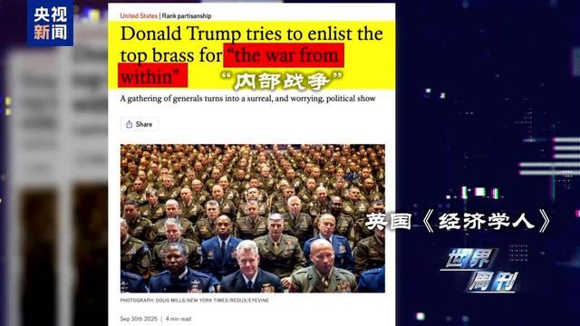 当地时间9月30日,美国弗吉尼亚州匡提科海军陆战队基地,近1000名驻守全球各地的美军现役将领被紧急召回。