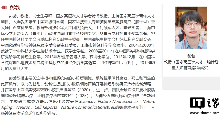 IT之家 7 月 13 日消息,复旦大学上海医学院彭勃、饶艳霞团队与上海交通大学曹立团队(兼上海市第六人民医院团队)合作。