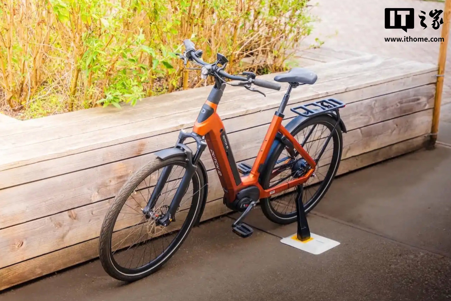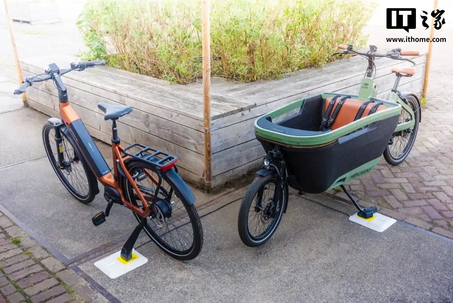 据介绍,这款无线充电套件由充电(脚撑)支架和地面无线充电板构成,整套系统功率为 150W,其中地面无线充电板重量约为 2 千克,支持 IP67 防护等级,便于全天候使用 / 轻松调整摆放位置。而充电(脚撑)支架需要用户自行布线安装到自行车上,安装后用户只需将自行车停在充电板上,即可进行无线充电。