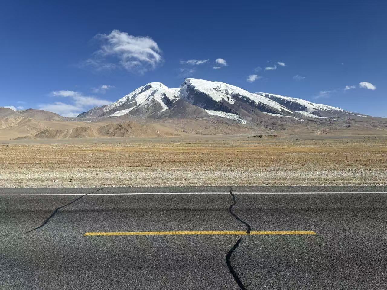 帕米尔高原上的慕士塔格峰俯瞰着喀喇昆仑公路