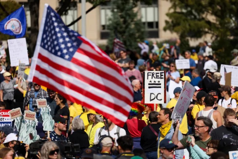 这些集会是自特朗普重返白宫以来的第三次大规模动员,背景是联邦政府停摆——这不仅关闭了联邦项目和服务,而且正在考验核心权力平衡,因为一个咄咄逼人的行政部门正在以组织者警告的方式对抗国会和法院,而这是美国滑向威权主义的一种趋势。