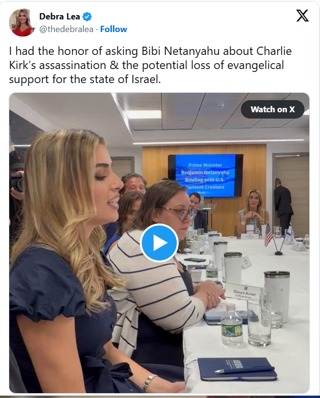 我有幸就查理·柯克遇刺事件以及以色列可能因此失去福音派支持的问题向内塔尼亚胡总统提问