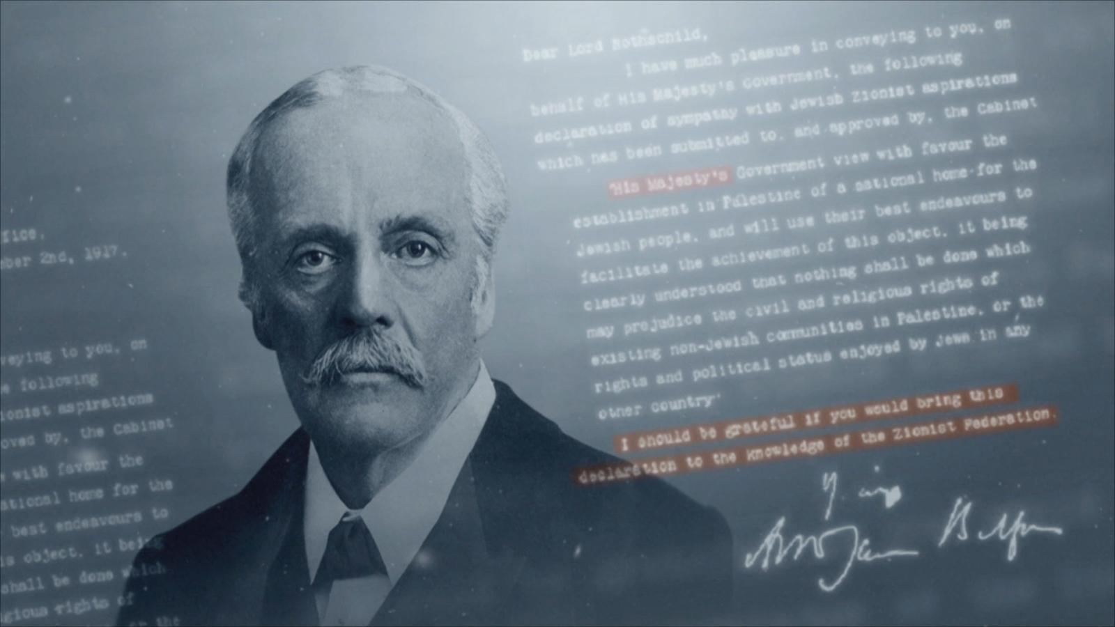 在英国的文件中,我们读到贝尔福写道:“我从未打算受当地居民的意愿和愿望所左右(正如承诺书中所述)。犹太复国主义远比居住在那片古老土地上的70万阿拉伯人的愿望和先入为主的观念重要得多。”