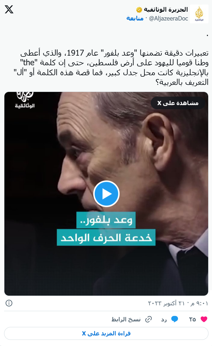 他离去时,给我们留下了“丑陋”的遗产和一个“宣言”,在阿拉伯语中,这个“宣言”被委婉地描述为阴谋或“罪恶的宣言”。每年的11月2日,在我们阿拉伯人的集体意识中,都留下了深刻的印记,我们仍然铭记着这一天,铭记这个人以及他那臭名昭著的“宣言”。