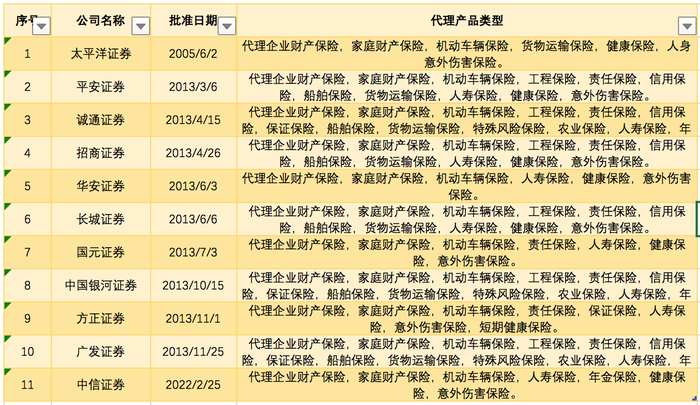 但在现实中,具备相关资质的券商数量并不多。据界面新闻不完全统计,目前仅中信证券(600030.SH)等少数几家券商持有保险兼业代理资质,拥有专业保险销售牌照的券商更是屈指可数。