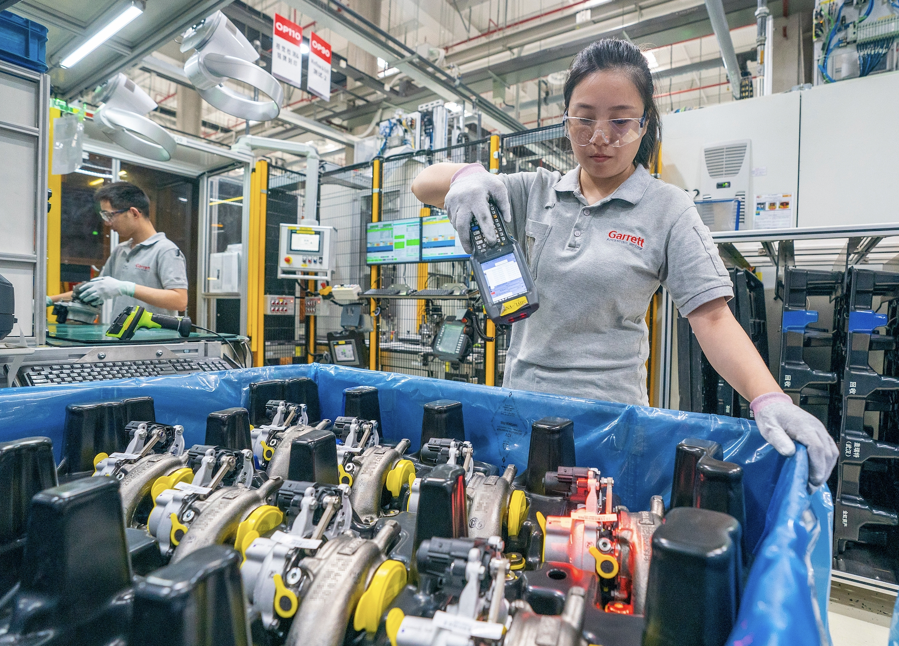 2023年7月5日,位于武汉东湖高新区的盖瑞特武汉工厂,员工在增压器自动化高速生产线上工作。图片来源:CFP