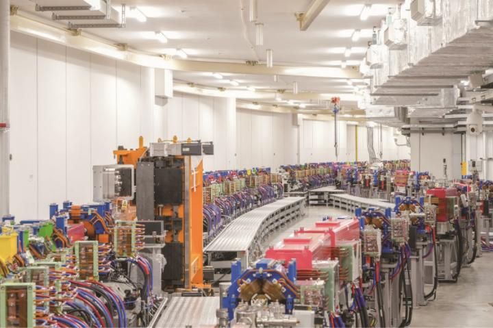 最后,6 GeV的电子束团被注入周长约1360米的储存环,这座环形建筑占地面积可以容纳20个足球场。电子束以接近光速的速度在储存环内回旋运行,在通过弯转磁铁或像“芒果”型扭摆器等插入件时,沿切线方向释放出稳定且高能量、高亮度的同步辐射光。