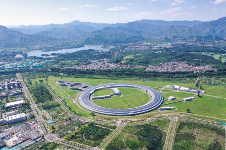 从空中俯瞰,这座宏大的装置形似一个超级放大镜,其建成标志着我国同步辐射光源实现了代际跨越,将为解决国家重大需求和前沿科学问题提供强大的技术支撑。