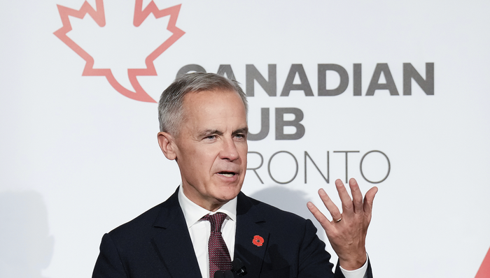 当地时间2025年11月7日,加拿大多伦多,加拿大总理马克·卡尼在加拿大多伦多俱乐部发表讲话。图片来源:CFP
