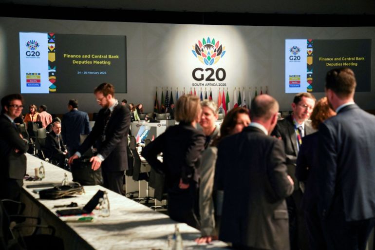 二十国集团的财政部长和中央银行行长代表团出现在南非开普敦会议中心 (路透社)