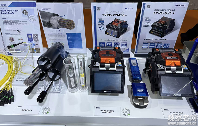 在住友电工的展台上,有一款高精度纤芯对准光纤熔接机,这是一款行业领先的熔接机,具有高适应性,能够实现5秒快速熔接和9秒高速加热。此外,智能带状光纤熔接机也备受关注,它具备高效的熔接能力,可针对带状光纤进行精准熔接,特别适用于大规模光纤布线等场景,能有效提高光纤熔接的效率和质量,为通信网络的建设和维护提供有力支持。